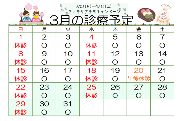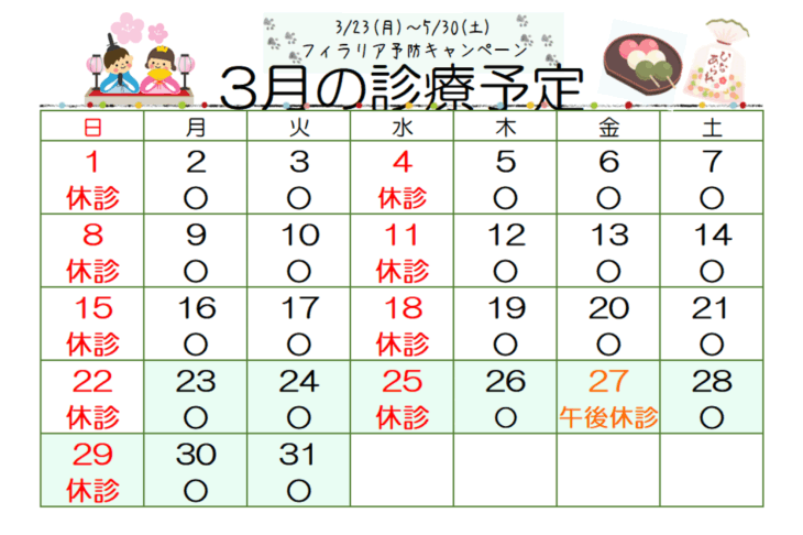3月の診療予定
